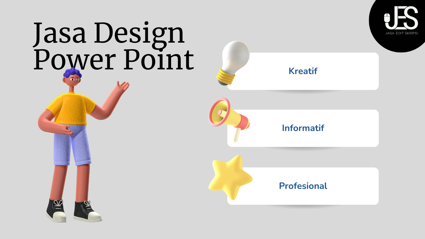 Jasa Design Power Point sangatlah penting. Baik kamu seorang mahasiswa yang sedang mempersiapkan sidang skripsi, maupun seorang profesional yang akan mempresentasikan ide ke atasan atau klien, design Power Point yang menarik dan terstruktur dapat membuat pesanmu lebih mudah dipahami dan diingat.